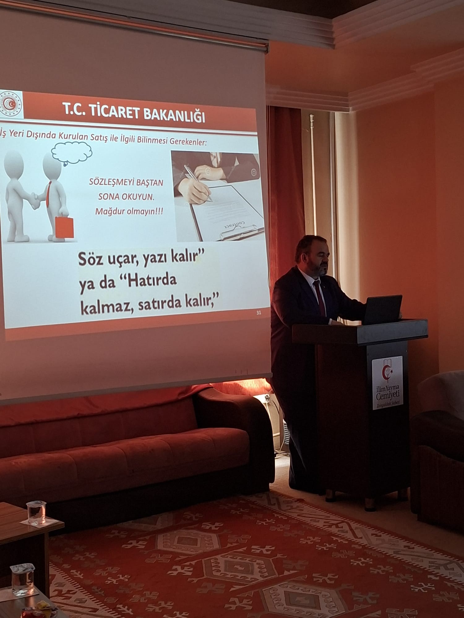 Zonguldak İlim Yayma Cemiyeti Yükseköğrenim Öğrenci Yurdu’nda, İl Müdürümüz Sayın İsmail Maden tarafından ‘Tüketici Hakları’ konulu bilgilendirme sunumu gerçekleştirilmiştir. Öğrencilerle bir araya gelinmesine katkı sağlayan yurt yönetimine teşekkür ederiz.